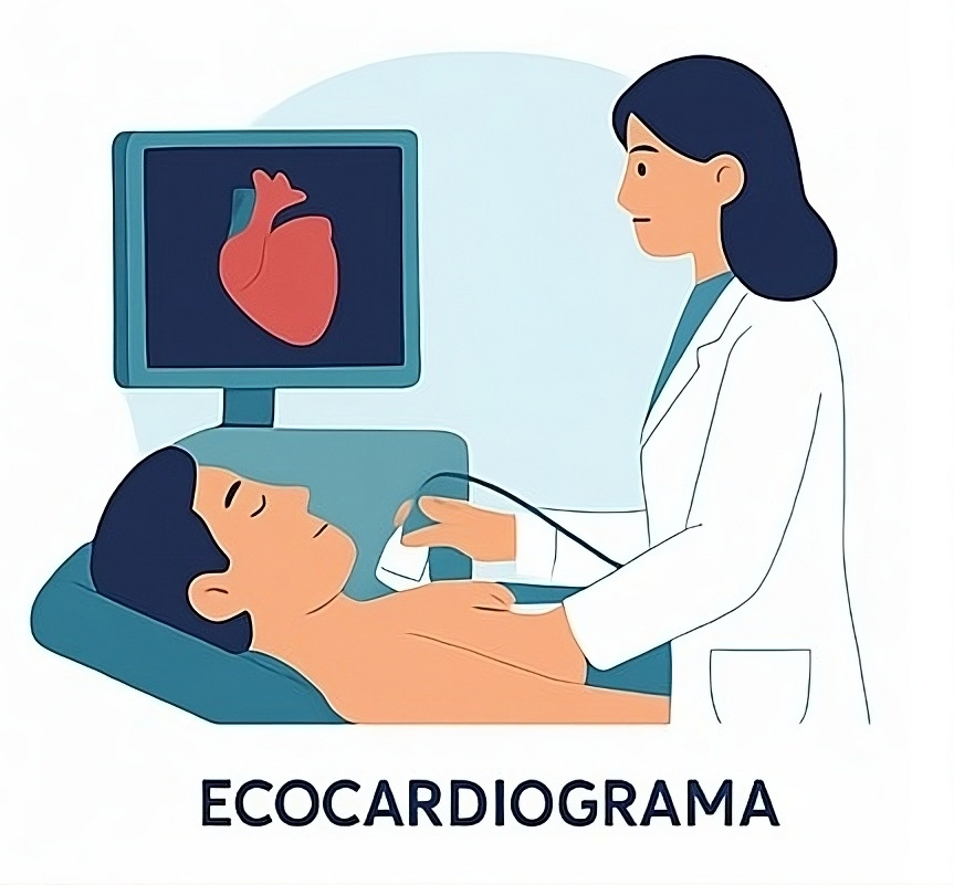 El ecocardiograma transtorácico (o “eco del corazón”) es un estudio no invasivo que utiliza ondas de ultrasonido para obtener imágenes del corazón en movimiento. Se realiza colocando un pequeño dispositivo (transductor) sobre el pecho del paciente, que permite al médico ver el tamaño, la forma y el funcionamiento del corazón, así como el movimiento de sus válvulas y el flujo de la sangre. Es una herramienta muy útil para detectar enfermedades cardíacas de manera segura y sin dolor. Puntos importantes a destacar: